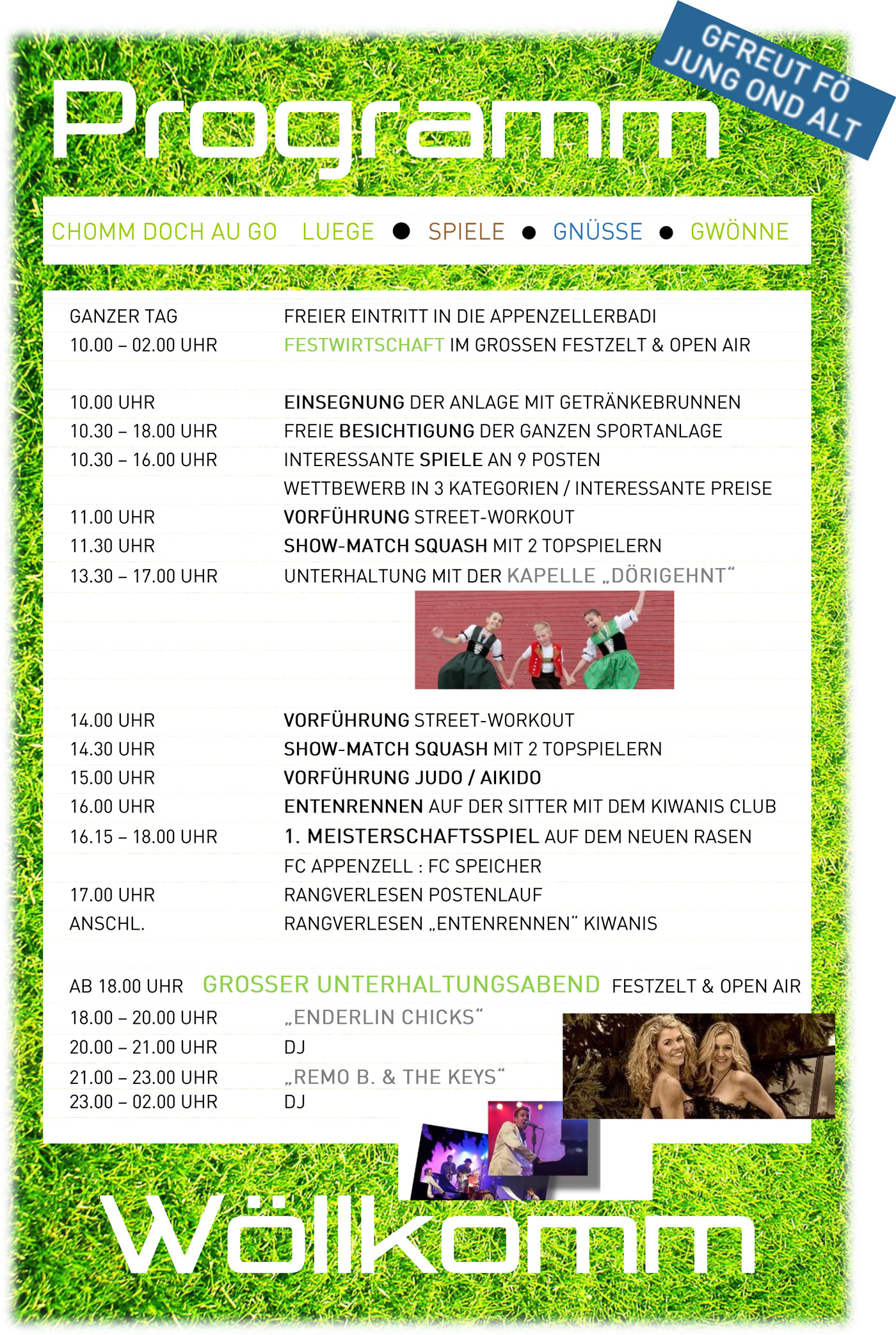 Spiel und Spass für die Bevölkerung den ganzen Tag. Wir hoffen Sie sind dabei.